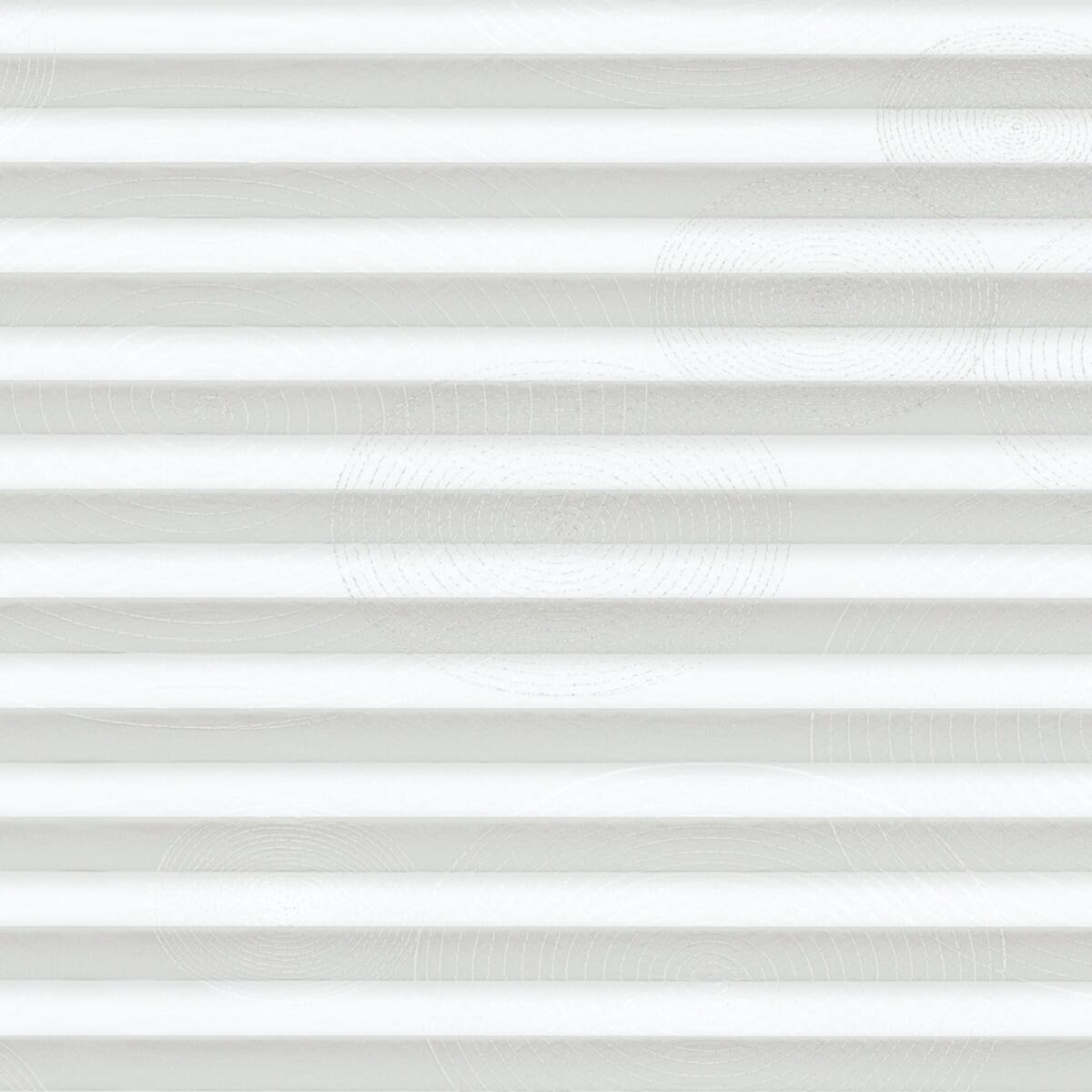 Hochmodisch und elegant wirkt das Plissee Drop 1143. Die leicht und luftig wirkende, weiße Pergamentstrukur der textilen Oberfläche erhält durch das spiralförmig angeordnete Muster aus Silberfäden eine besonders feine Note. Dank seiner blickdichten aber leicht transparenten Struktur bringt dieses Plissee angenehme Lichtakzente in den Raum und sorgt für eine entspannende und angenehme Gesamtwirkung. Das verspielt und gleichzeitig klassisch wirkende Plissee wertet Ihre Fensterfronten auf.