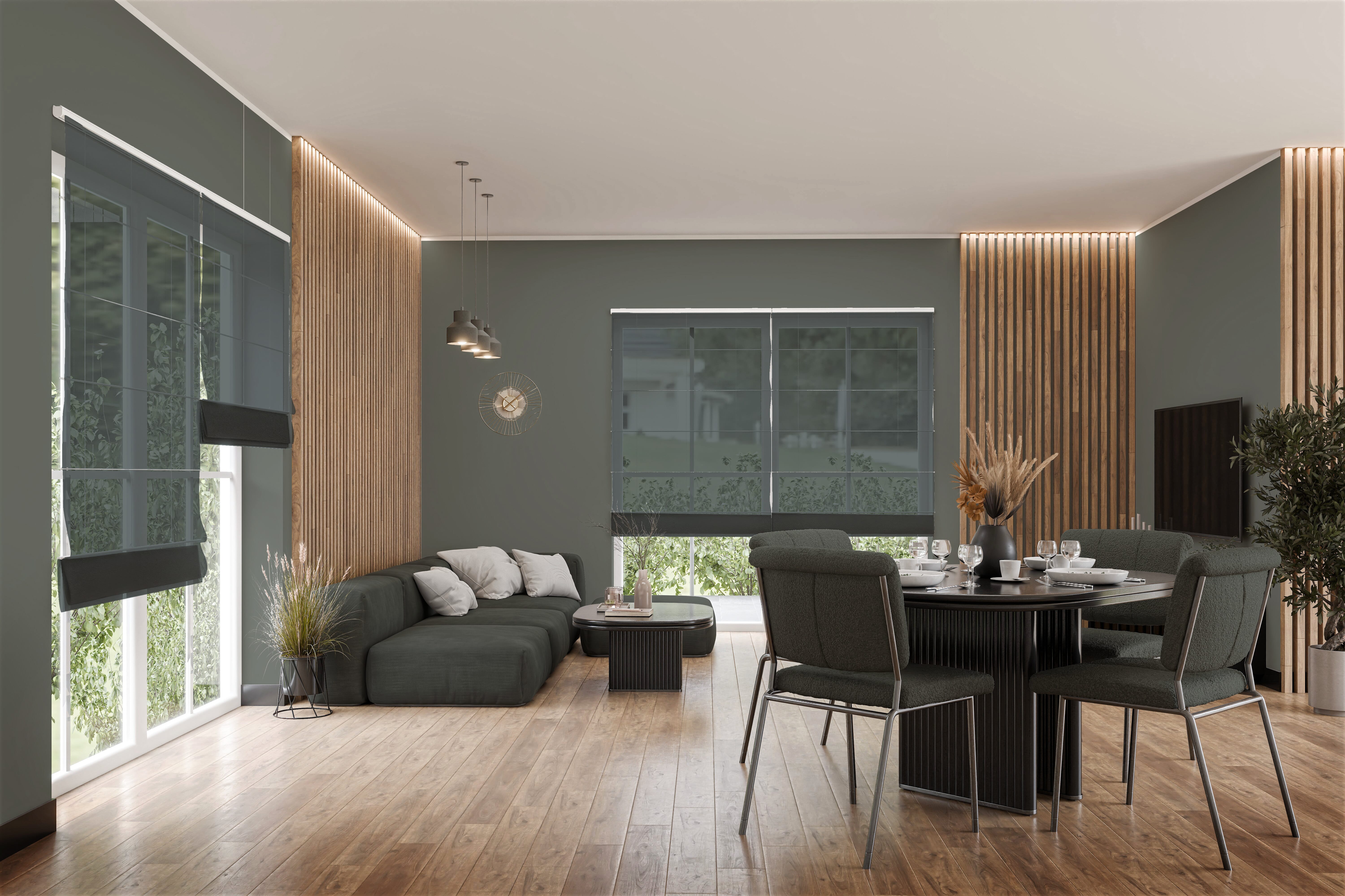 Das Raffrollo Brezza 9311 in dunklem Moosgrau bringt eine ruhige, dezente Eleganz in Ihr Interieur und eignet sich hervorragend für moderne, reduzierte Raumkonzepte. Der gedämpfte Grauton verleiht der Einrichtung eine subtile Dramatik, ohne die Harmonie zu stören. Besonders harmonisch wirkt die Farbe in Kombination zum Beispiel mit dunklen Hölzern oder stellt kontrastierende Akzente zu hellen Wänden und Böden dar. Die Lichtdurchlässigkeit des Stoffes sorgt für gleichmäßige Helligkeit in den Wohnräumen, wobei je mehr Licht von außen einfällt, umso heller wirkt optisch die Stofffarbe. Das zur Hälfte aus Leinen bestehende Material ist luftig leicht, von seiner Struktur angenehm und bringt zudem pflegeleichte Eigenschaften mit: Maschinenwäsche bei 30 °C und Bügeln auf Stufe 2. Seine ÖkoTex-Prüfung steht außerdem für solide, geprüfte Qualität.