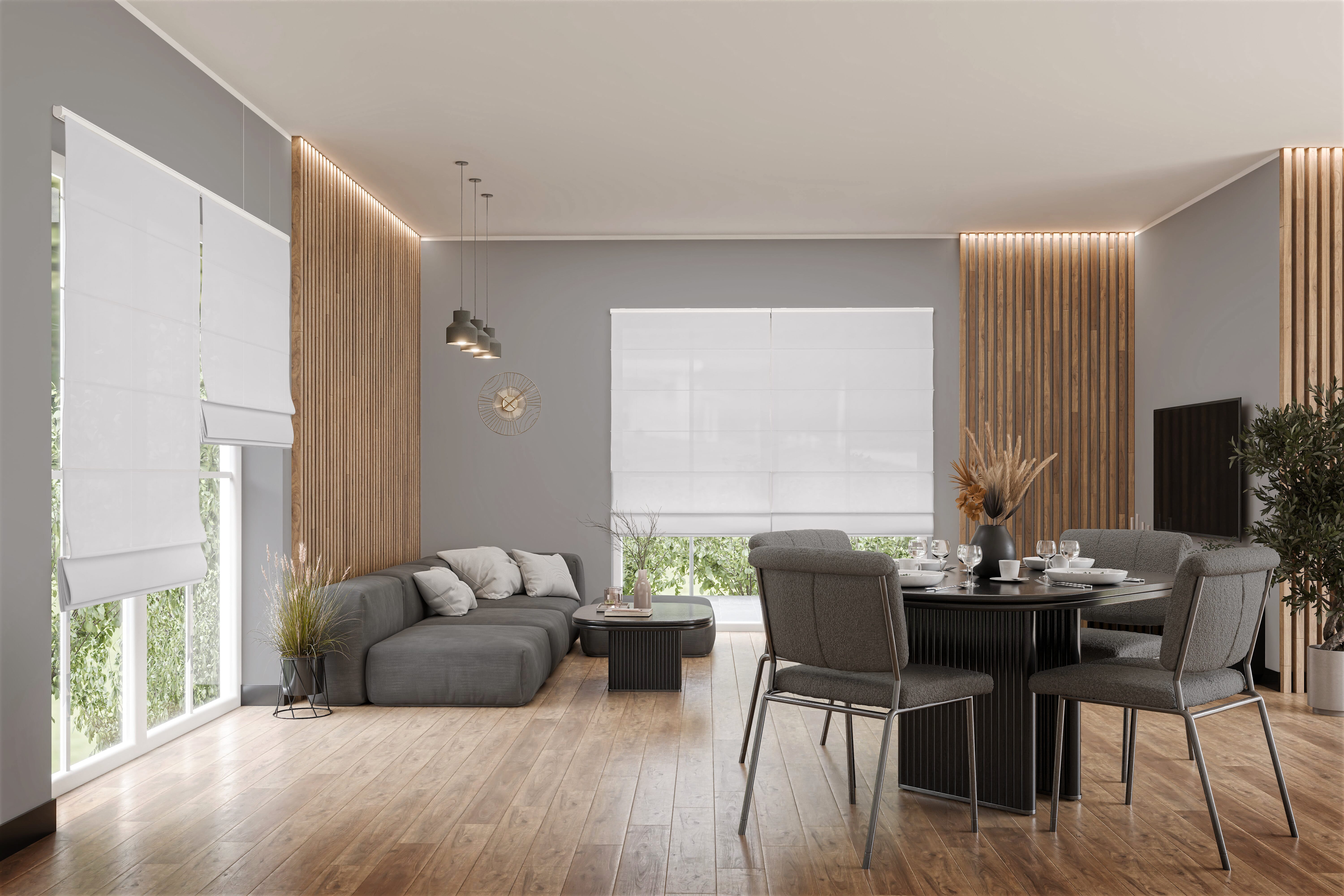 Das Raffrollo Meravo 9389 in einem aparten Weißton vermittelt Licht und Offenheit und eignet sich für verschiedenste Wohnstile – von modern-minimalistisch über klassische Arrangements bis hin zu zeitlosen Interiors. Der neutrale Farbton harmoniert ganz universell mit unterschiedlichen Holzmöbelstücken, Glasfronten und Dekoelementen. Auch reduzierte ebenso wie kräftige Farbkonzepte lassen sich mit dem Raffrollo in Weiß stimmig ergänzen oder bewusst in Szene rücken. Sein halbtransparenter Stoff erlaubt Tageslicht, den Raum sanft zu durchfluten, während tagsüber ein solider Sichtschutz gegeben bleibt. Außerdem ist er in der Handhabung praktisch und gesundheitlich unbedenklich: Das nachhaltige Material ist in der Maschine waschbar und mit ÖkoTex zertifiziert.