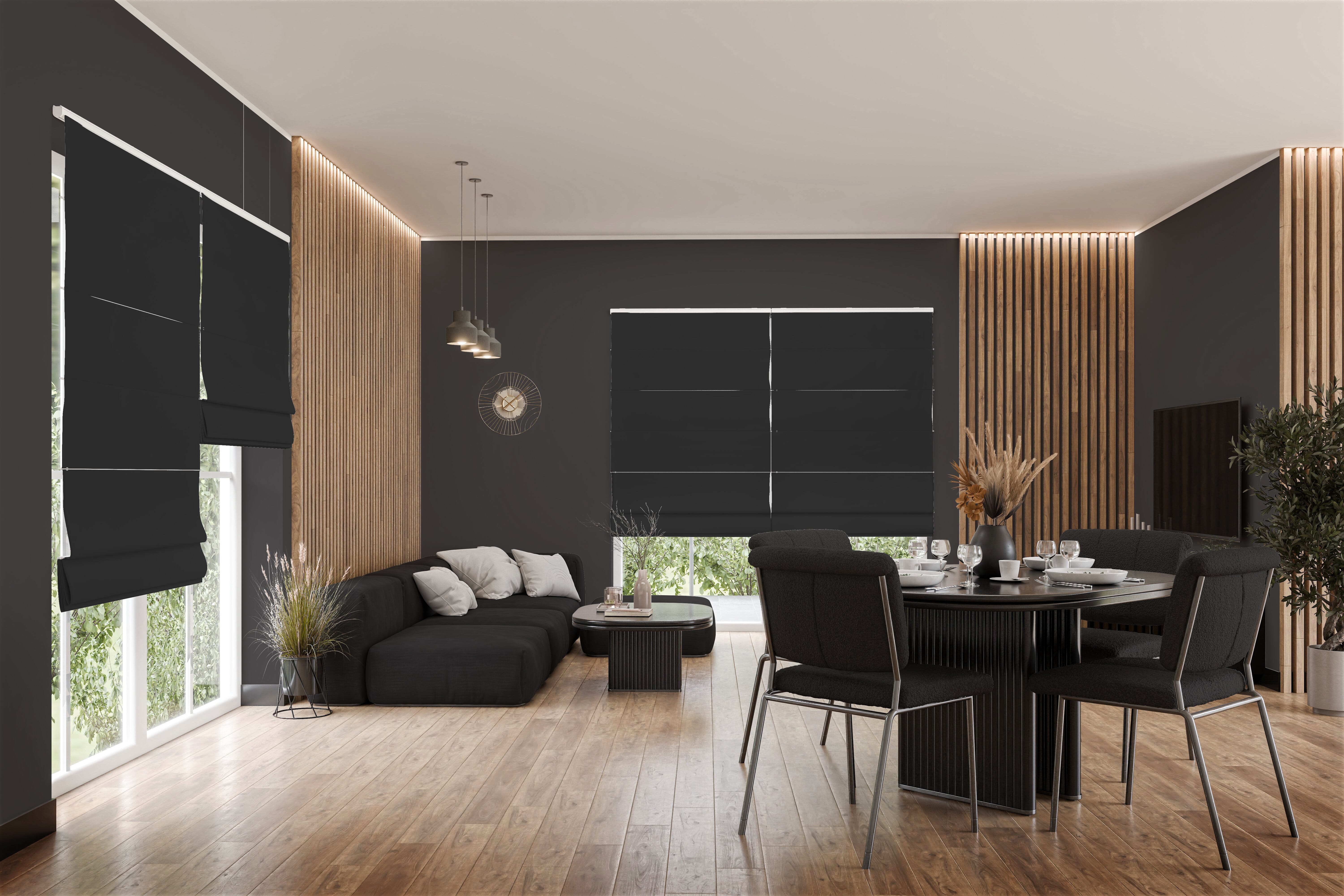 Das Raffrollo Sularo 9382 in Anthrazitgrau bringt eine tiefgründige Farbnote in jeden Raum, die besonders in klassischen, zeitlosen oder stilsicheren Einrichtungskonzepten gut zur Geltung kommt. Die dunkle Nuance verleiht der Fensterdekoration Ausdruckskraft und lässt sich beispielhaft mit Möbeln aus dunklem Holz, metallischen Akzenten oder kontrastierenden hellen Flächen kombinieren, wobei sie sich gleichzeitig in zahlreiche andere Stilwelten einfügt. Dank der blickdichten, aber lichtdurchlässigen Stoffqualität bleibt der Raum offen und freundlich, während ein zuverlässiger Sichtschutz gewährleistet wird.