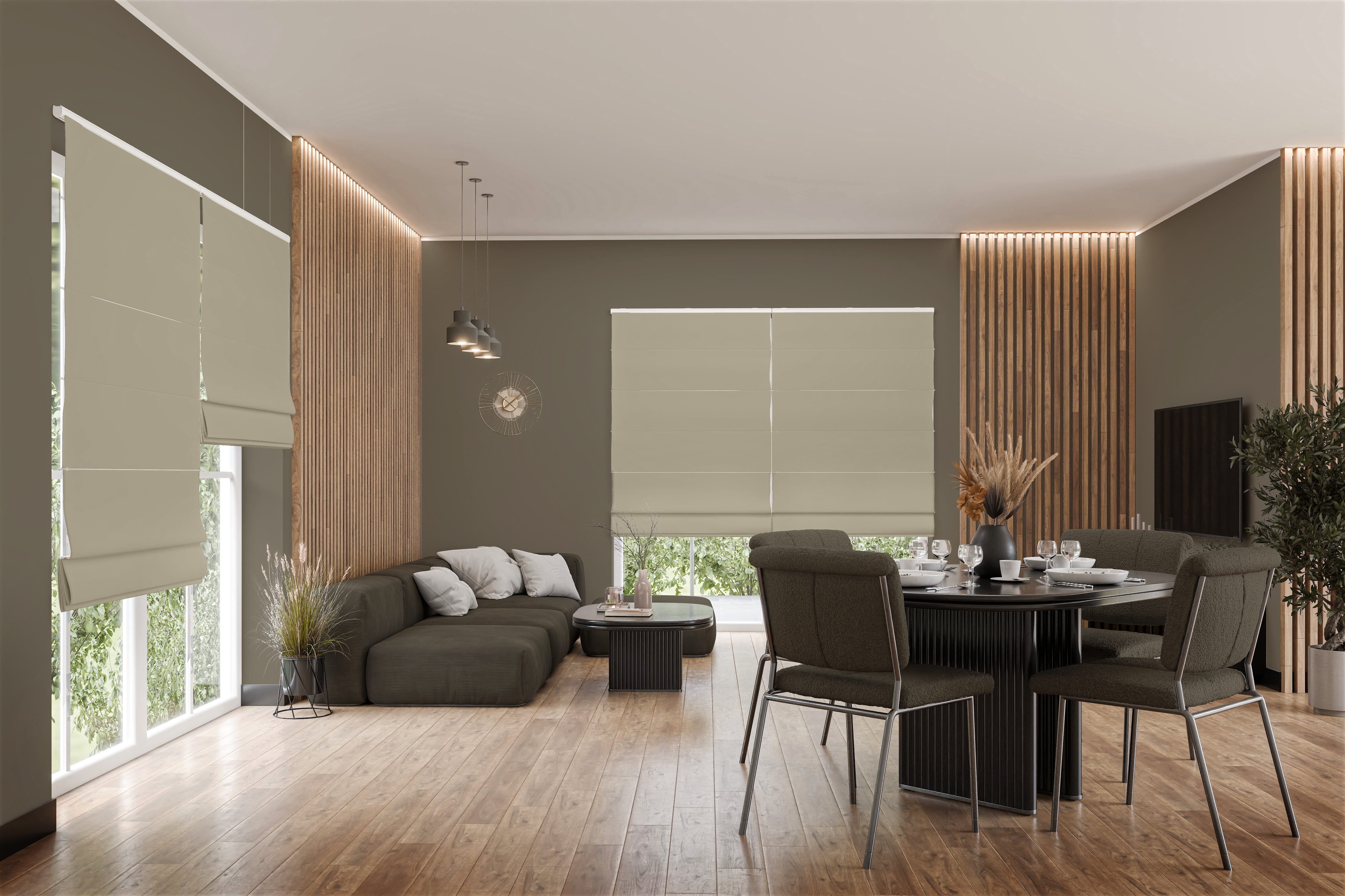 Das lichtundurchlässige Raffrollo Tenebria 9413 in Beige vereint unaufdringlichen Farbcharakter mit maximaler Lichtabschirmung. Der dicht gewebte Black-Out-Stoff sorgt dafür, dass Räume zuverlässig verdunkelt werden und auch keine Einsicht von draußen möglich ist. Dabei wirkt seine freundliche Farbgebung gemütlich und edel zugleich. Sie fügt sich gleichermaßen für helle, klassische Wohnkonzepte wie für moderne, reduzierte Einrichtungen. Das Raffrollo in Beige kann beispielsweise als ruhige Ergänzung zu Holz-, Naturstein- oder Metalloberflächen eingesetzt werden. Seine gleichmäßige Raffung und glatte Stoffoberfläche verleihen dem Fenster eine elegante Kontur. Der horizontale Faltenwurf entsteht dabei beim Hochziehen über die seitliche Bedienkette automatisch. Das Raffrollo wird von uns auf Maß gefertigt, wodurch überflüssiger Stoffüberstand oder unvollständige Abdeckung vermieden werden – besonders wichtig, wenn das Zimmer bestmöglich verdunkelt werden soll. Gehen Sie gleich zum Konfigurator und bestellen Sie Ihre neue, montagebereite Fensterdekoration bequem in nur wenigen Schritten!